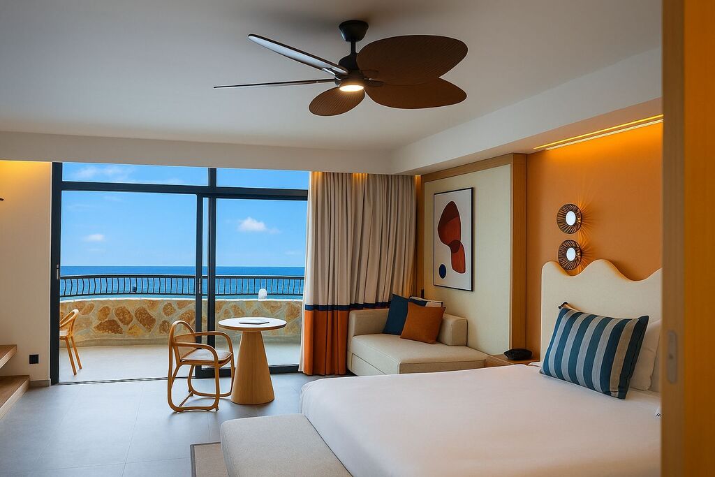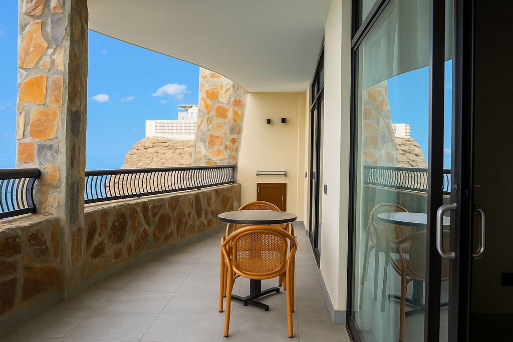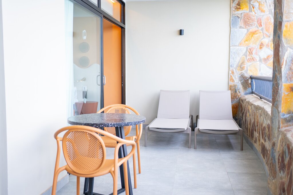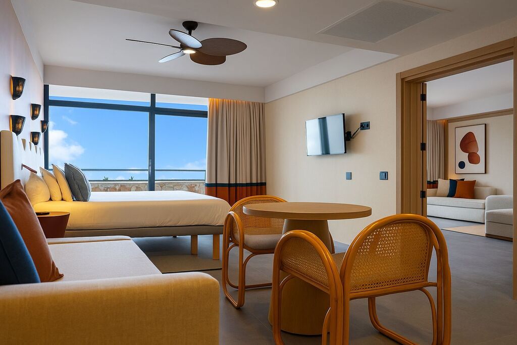 La Suite Familiar Vista Mar ofrece el espacio perfecto para disfrutar en familia con dos dormitorios independientes que garantizan privacidad y comodidad. Su amplia zona de estar y la terraza privada permiten relajarse mientras se contemplan las espectaculares vistas al Atlántico. Equipada con baño, aire acondicionado, Wi-Fi y televisión, combina estilo y confort para unas vacaciones inolvidables.